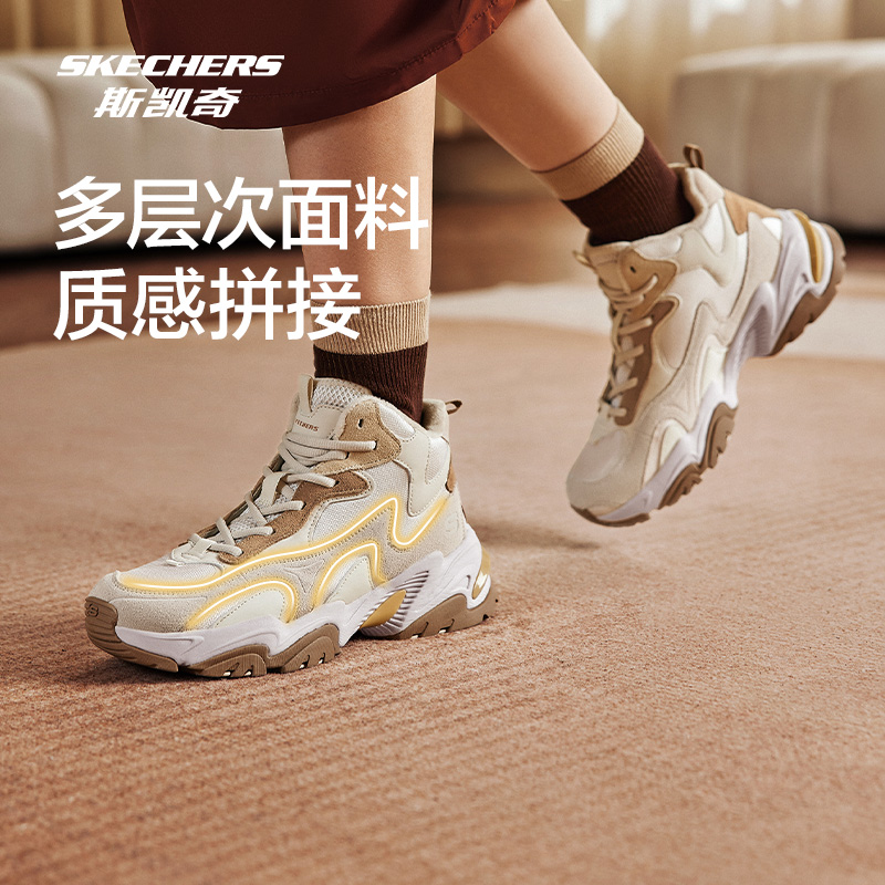 斯凯奇高帮护脚踝加绒机甲鞋女老爹鞋减震运动鞋耐磨