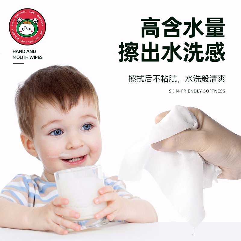80抽嫚熙绿贝壳新生婴儿湿巾婴幼儿专用手口可用纸巾厚洗脸巾专区