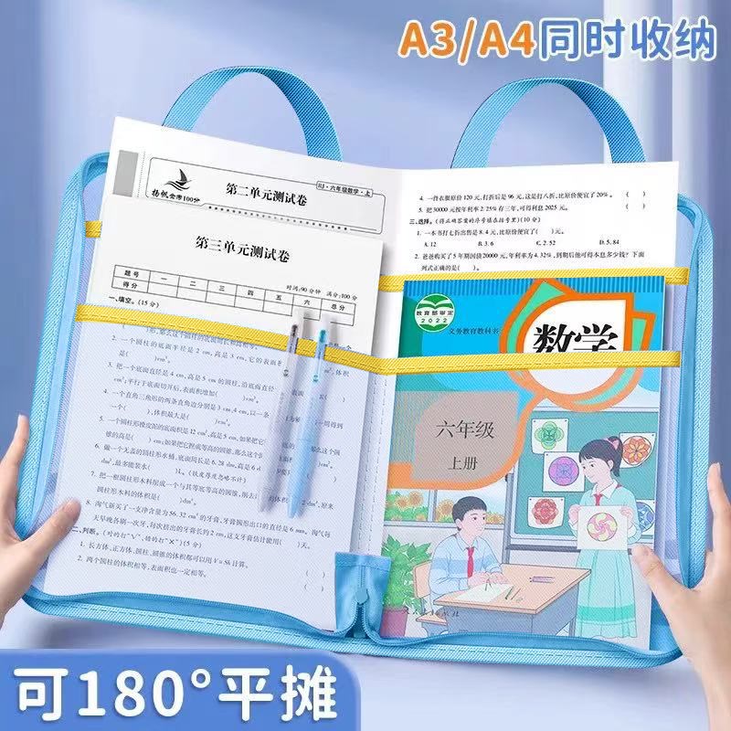 【A3科目袋】优质尼龙网纱学科分类手提透明补习袋手提袋学生拎书
