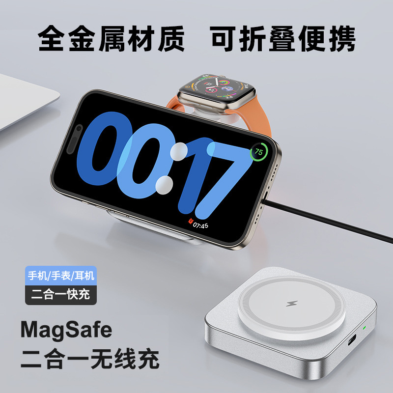 【超薄闪充】三合一无线磁吸充电器二合一适用苹果iPhone16ProMax手机applewatch手表S9底座magsafe耳机支架