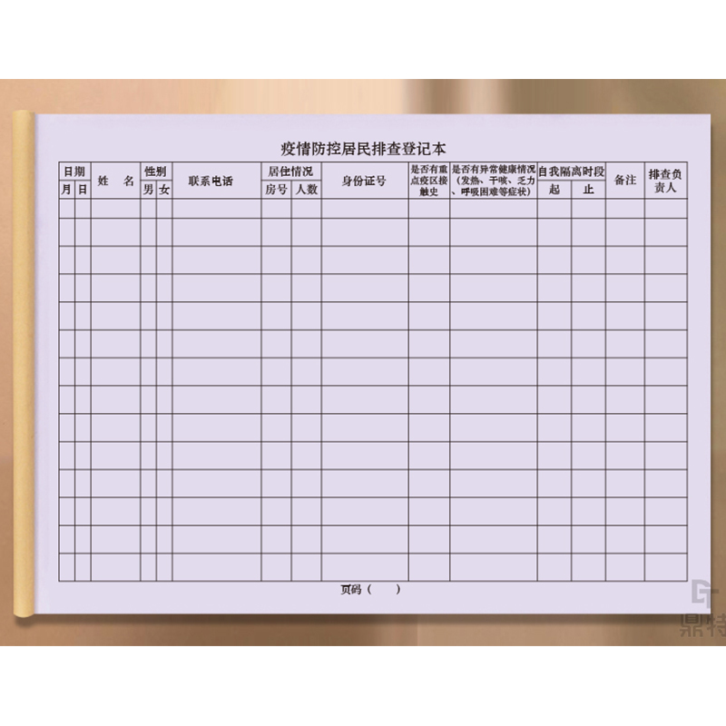 疫情防控居民排查登记本新冠人员登记本记录册疑似病例监控检查行踪小区物业医院门诊社区城镇人员流动登记本