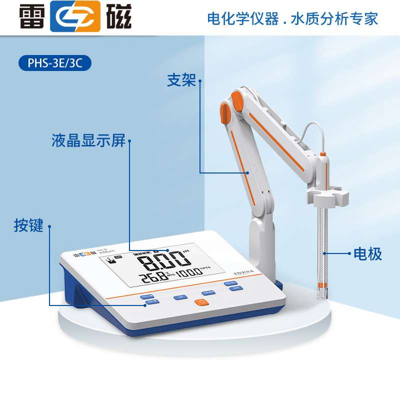 上海雷磁PHS-3C/3E台式数显酸度计PH值酸碱度E-301-F PH复合电极