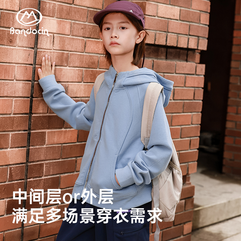 半度闲女童加绒运动外套秋冬装新款洋气儿童加厚冬季连帽上衣童装