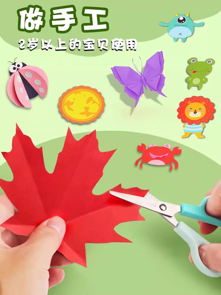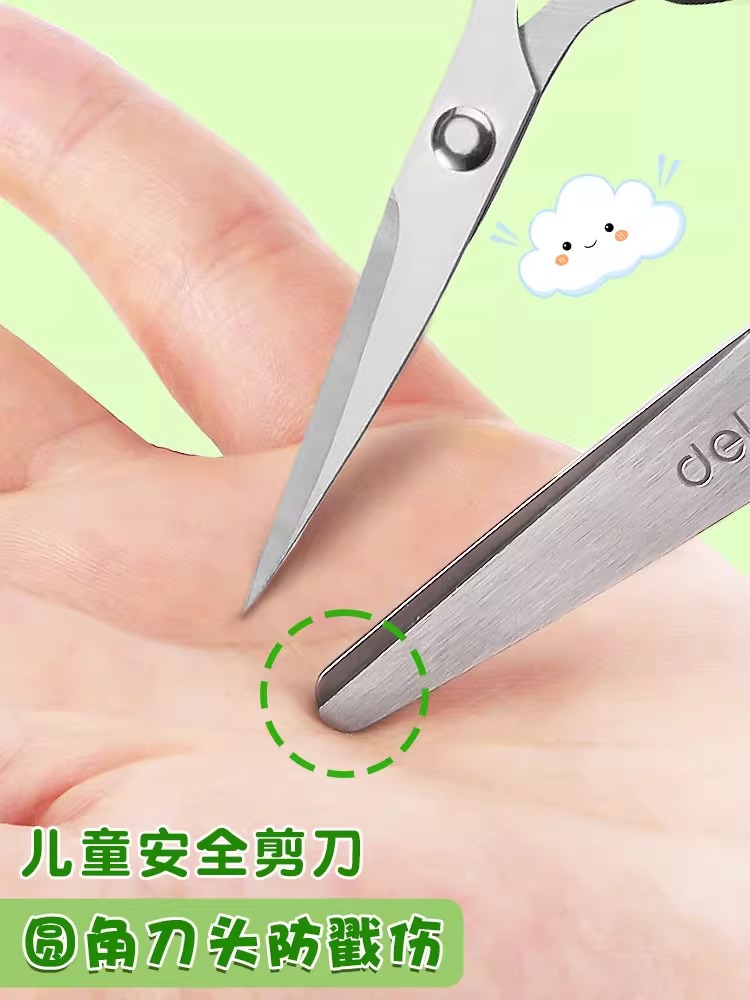 得力儿童剪刀安全手工带保护套宝宝剪刀手工制作安全不伤手美术美工幼儿园学生专用花边剪圆头塑料小剪子