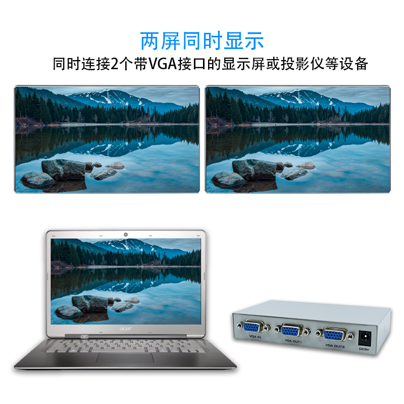 迈拓维矩 MT-1502-K 一进二出2路VGA分配器一分二高清分屏器电脑视频分频器显示器同步