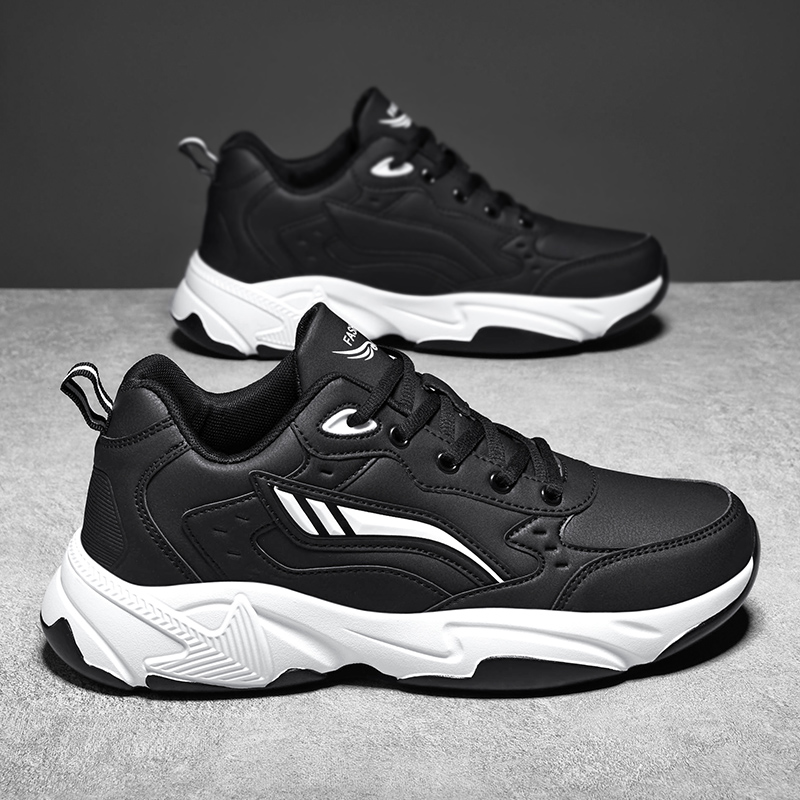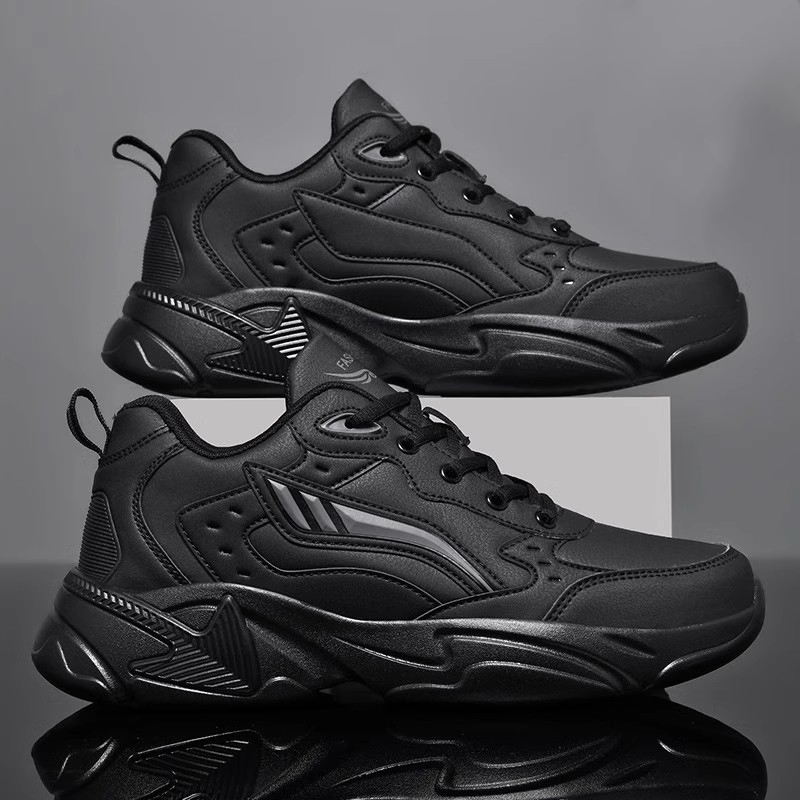 男鞋青少年春秋季黑色皮面特大码46运动鞋男士47脚宽肥胖48跑步鞋