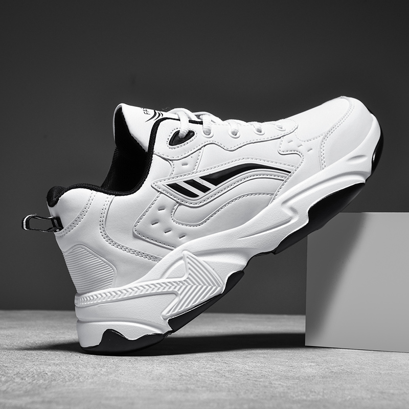特步跑步鞋男鞋秋季新款黑色运动鞋皮面防泼水爸爸减震网面休闲鞋