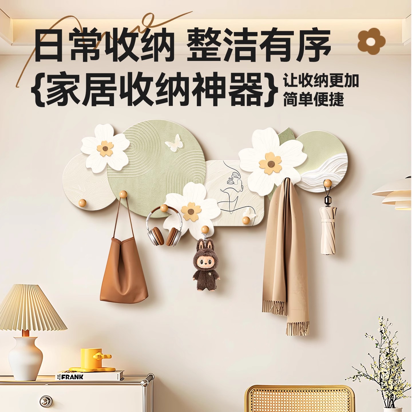 花开半夏玄关挂钩装饰画奶油风高级感洞洞板挂衣架客厅入户收纳架