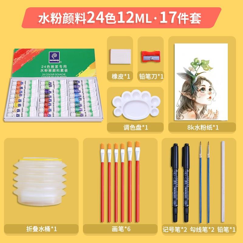 24色初学者水粉颜料套装学生专用水彩颜料儿童水彩画工具套装