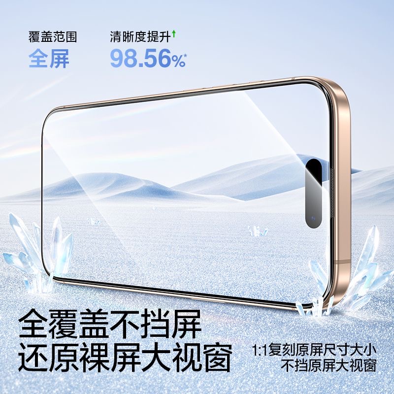 倍思无纹膜适用苹果iPhone17钢化膜16ProMax保护膜15Pro无尘仓14手机贴膜13全屏覆盖12防摔11高清AR抗反射Air