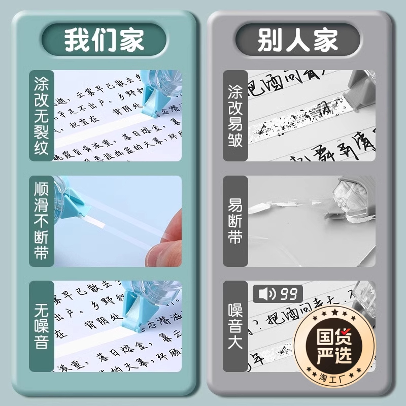 晨光彩色静音修正带学生专用实惠装大容量静音耐摔加量耐用涂改带顺滑不卡带无噪音初高中生修改错题学习用品