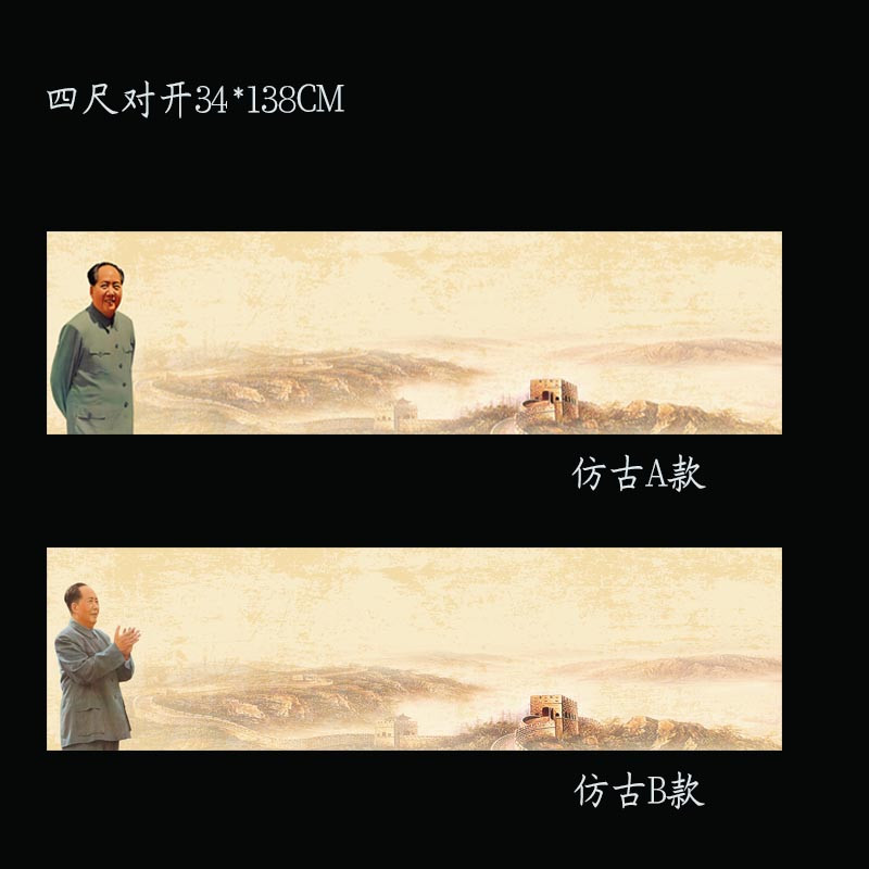 四尺对开小六尺毛体作品纸定制毛主席头像长城背景空白沁园春伟人