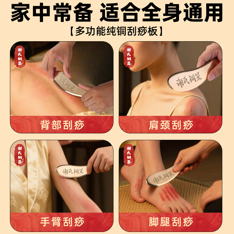 纯黄铜谢氏砭法虎符刮痧板家用肩颈背部黄铜砭全身通用按摩刮痧刀