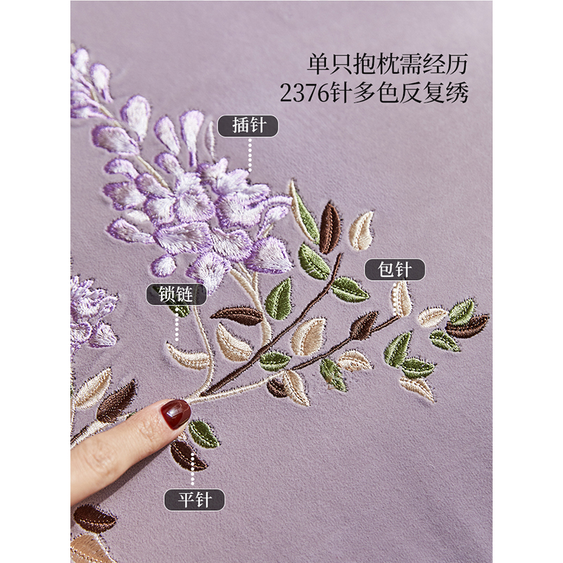 【国补再减15%】蜡笔派藤萝刺绣抱枕新中式沙发客厅床头靠垫腰枕