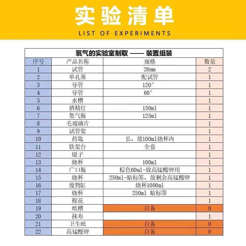 初中化学实验器材高锰酸钾制取氧气装置套装中考考试实验操作题用