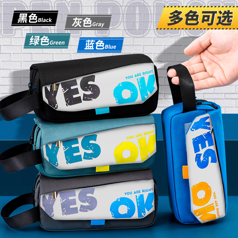 简约日式笔袋男孩子帆布大容量文具盒男孩款小学生三四一年级透明文具袋男生女生初中生用高颜值笔盒铅笔