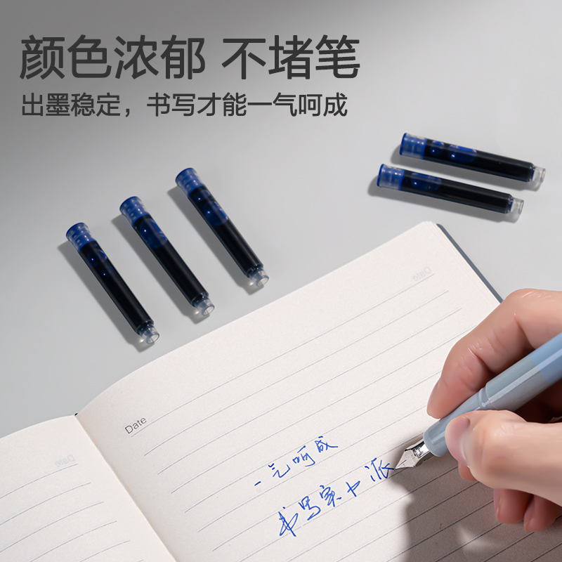 得力钢笔墨囊速干墨水小学生用文具练字笔可擦晶蓝可换墨囊通用囊式墨水三年级学生儿童练字晶蓝黑色蓝黑墨蓝
