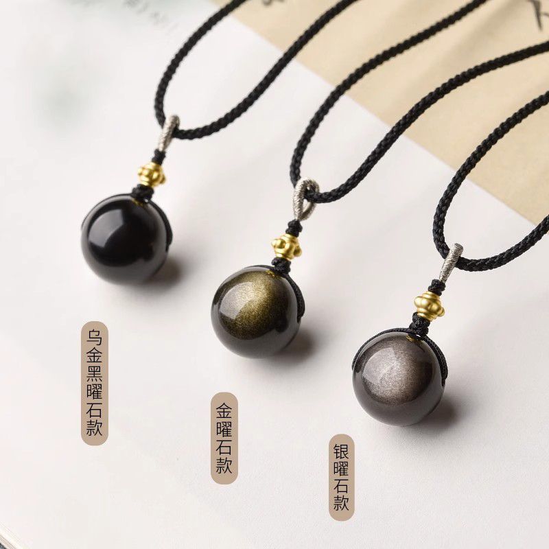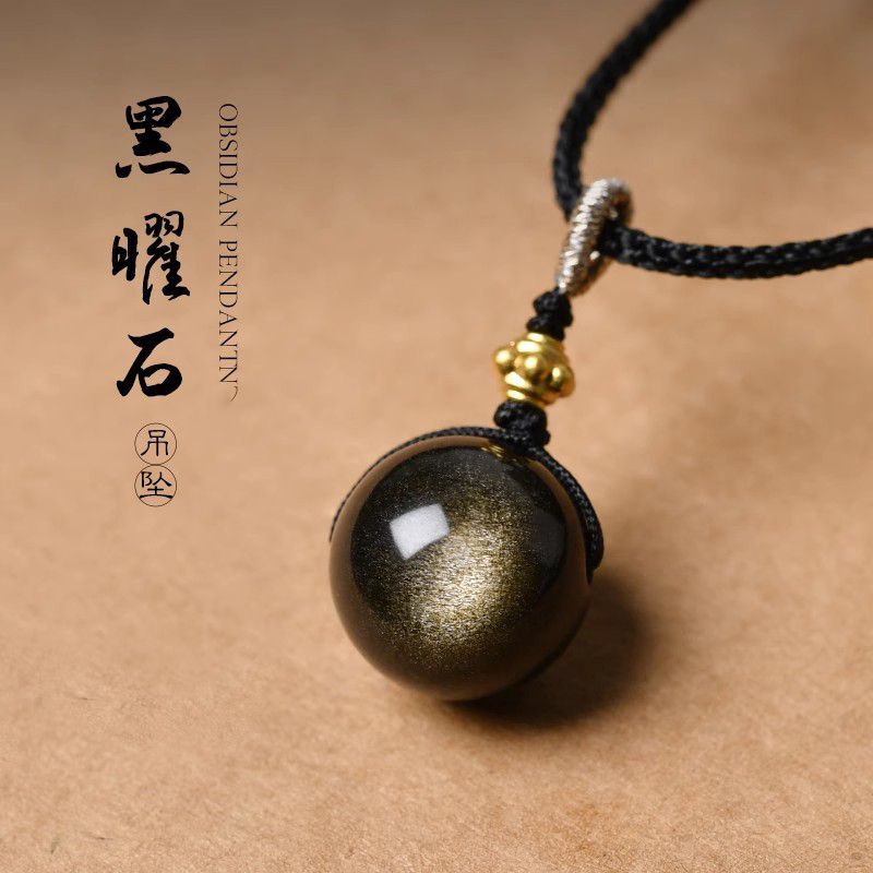 天然黑曜石转运珠吊坠女本命年招财情侣项链礼物饰品珠子水滴