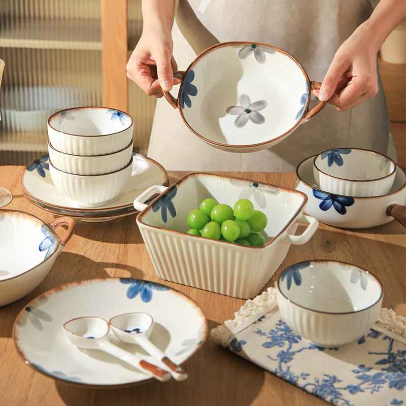 法式奶油风陶瓷碗餐具碗盘套装吃饭碗高颜值轻奢汤碗家用2025新款