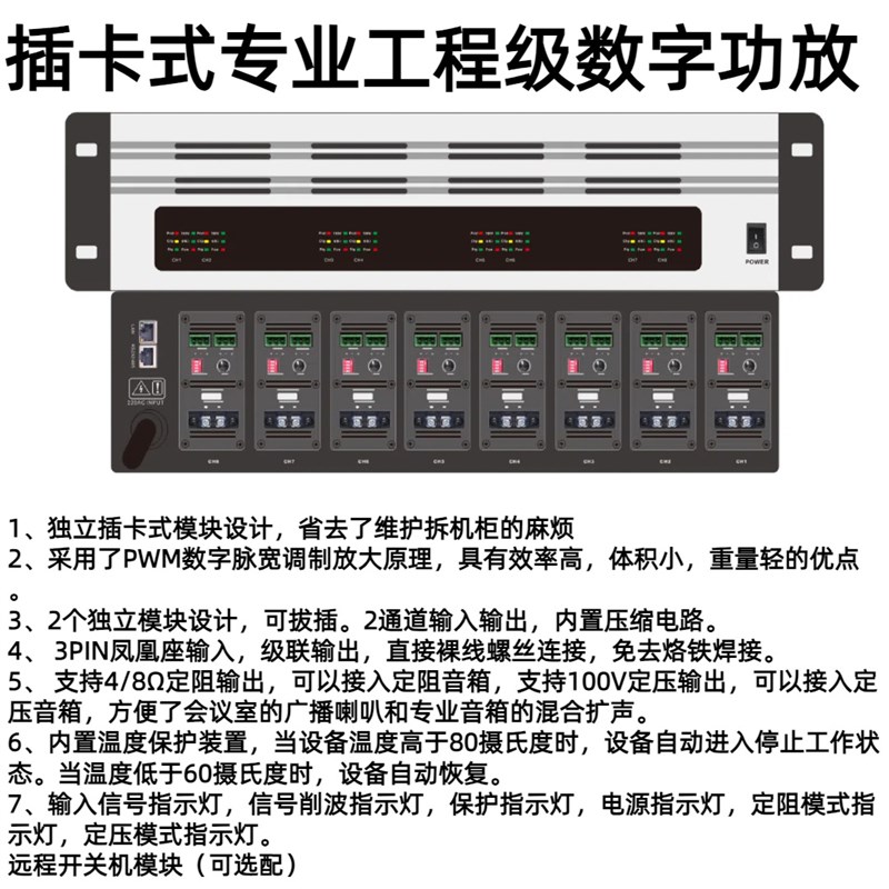 - OEM/ODM跨境热销广播系统模块化专业功P放机8通道8*350W