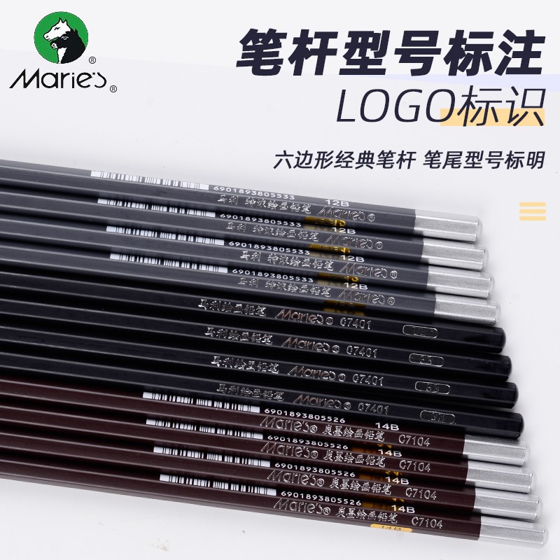 马利素描铅笔初学者速写2h6b8b14b绘画炭笔软中硬绘图2比4b美术用
