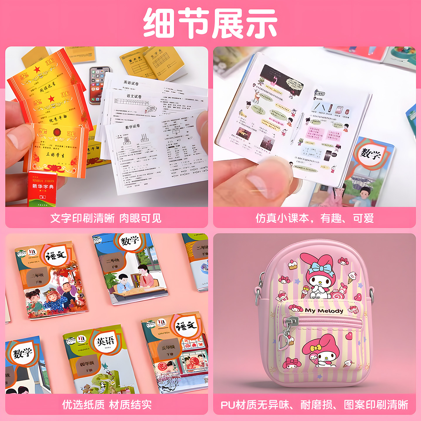 女孩迷你文具全套装小书包斜挎包仿真小书本过家家玩具套装礼物