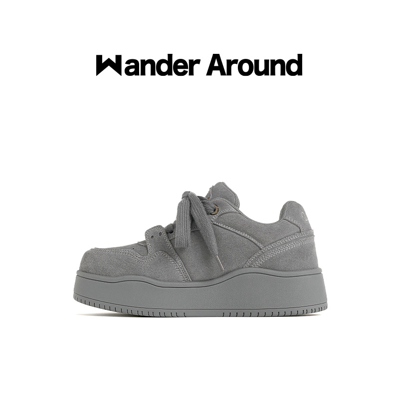【明星同款】Wander around 复古灰色厚底增高休闲板鞋男女同款