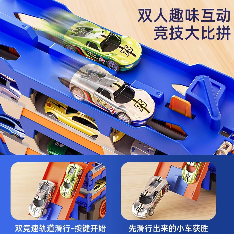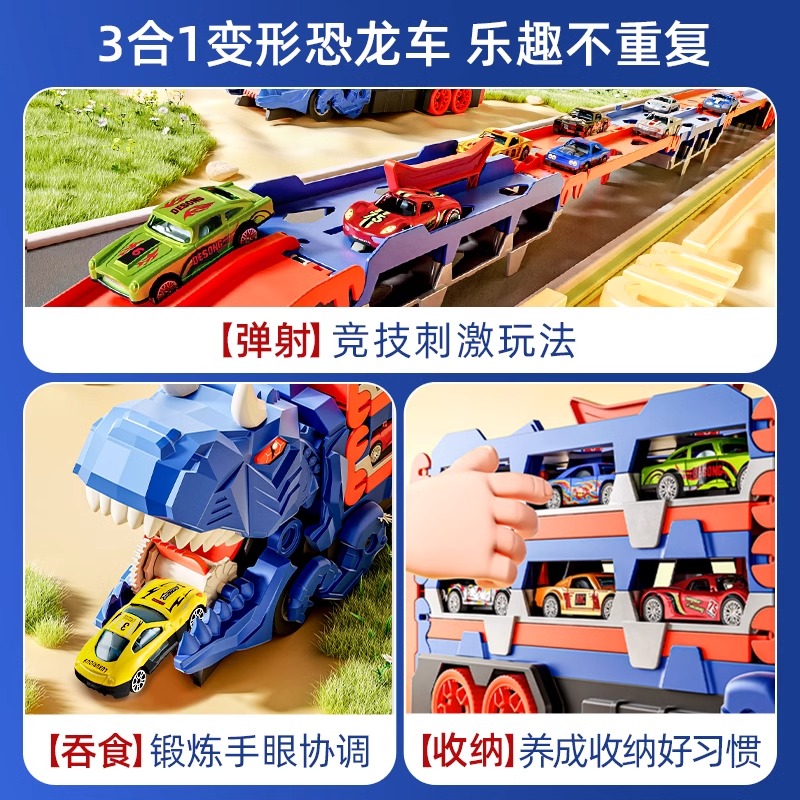 儿童恐龙6变形滑行弹射合金收纳小汽车男孩3霸王龙吞食轨道玩具车
