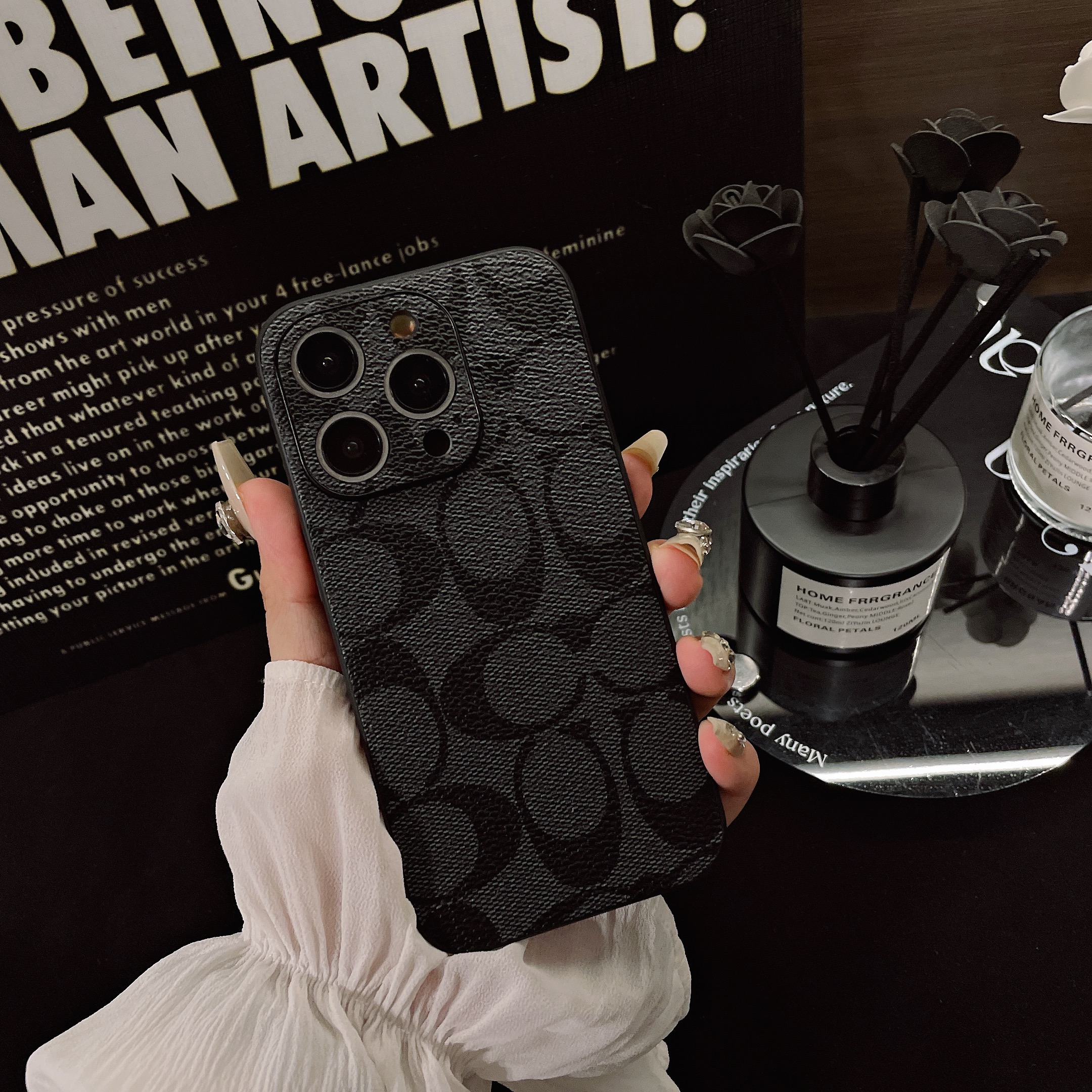 新款潮牌蔻驰老花适用苹果16promax手机壳iPhone15皮质14pro防摔13全包12软边11保护套经典男女款网红小众