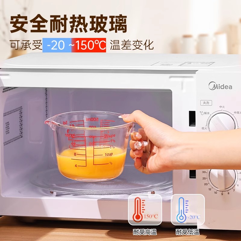 玻璃量杯带刻度有手柄过滤网厨房耐高温烘焙打蛋杯热牛奶专用杯子