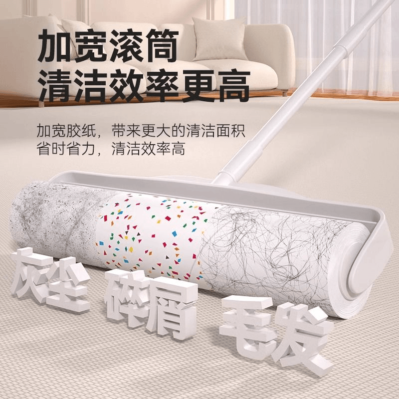 长杆粘毛器滚筒长柄滚刷可撕式纸替换床上地板吸头发灰尘清理神器
