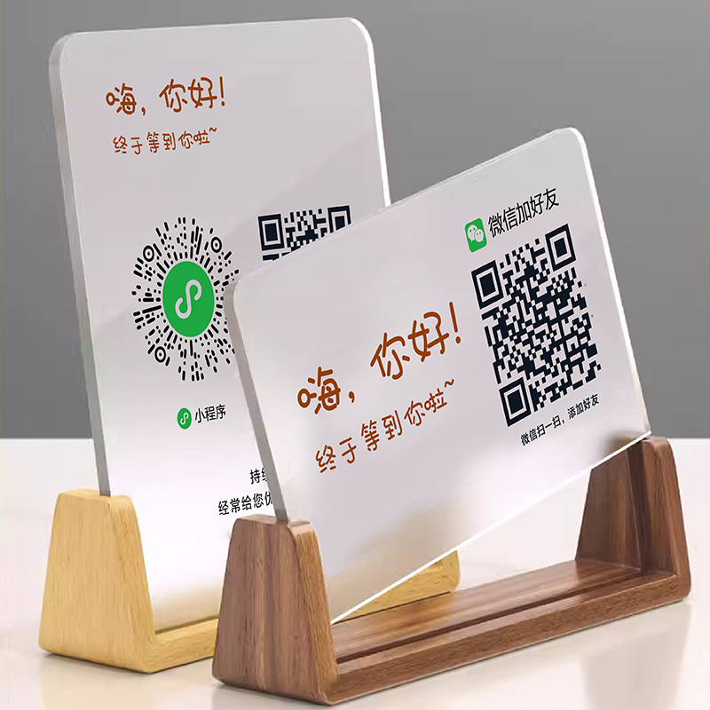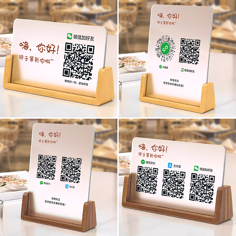 亚克力店铺收银台二维码展示牌摆件收款码定制微信加好友收付款收银摆台支付宝扫商家收钱立牌贴纸做广告制作