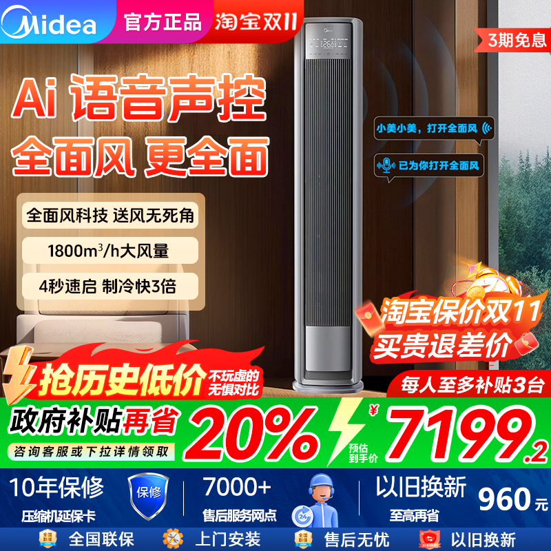 【菜鸟】美的空调全面风2匹3匹pro立式新一级变频家用冷暖柜机