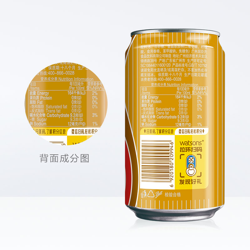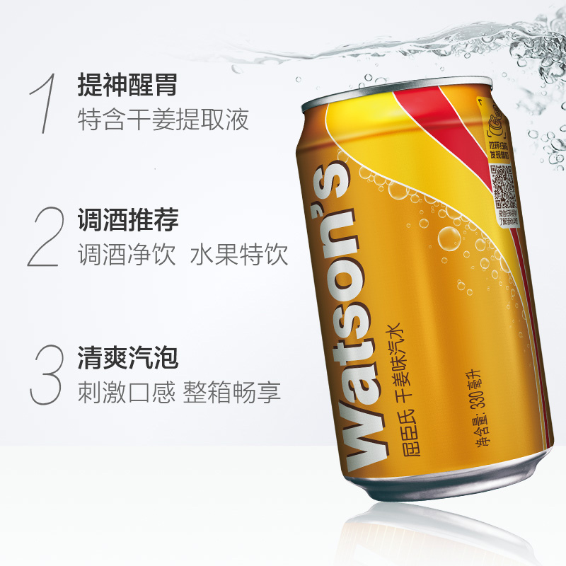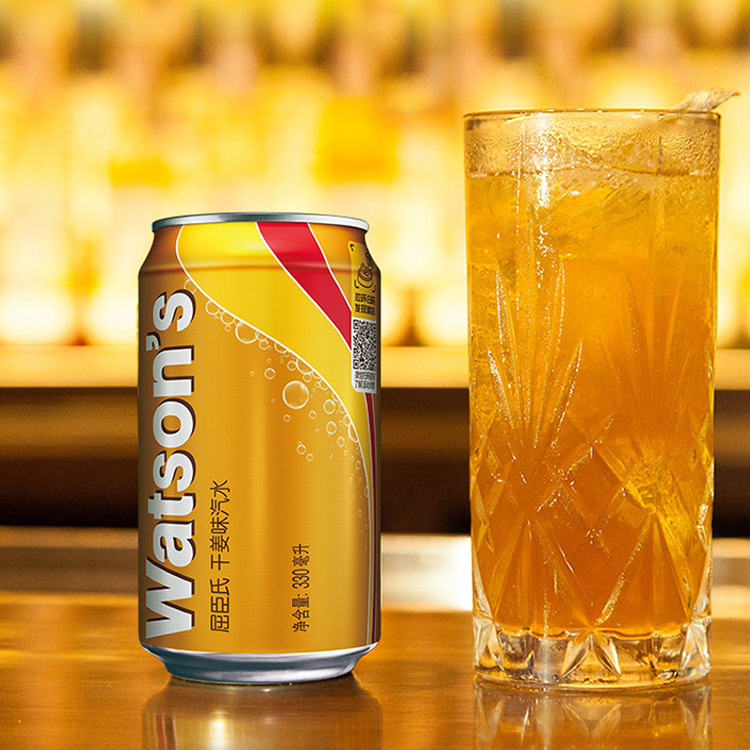 屈臣氏苏打汽水干姜味调酒气泡水330ml*8罐碳酸饮料整箱柠檬