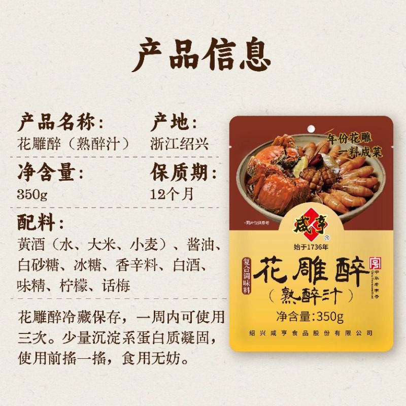 咸亨花雕醉熟醉汁醉虾蟹汁小龙虾罗氏虾生熟腌海鲜卤汁话梅调味汁