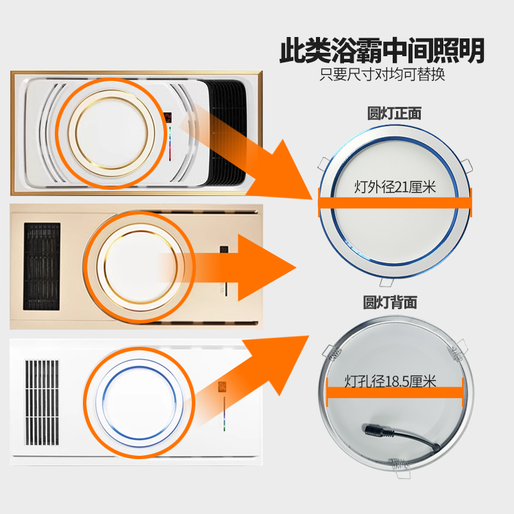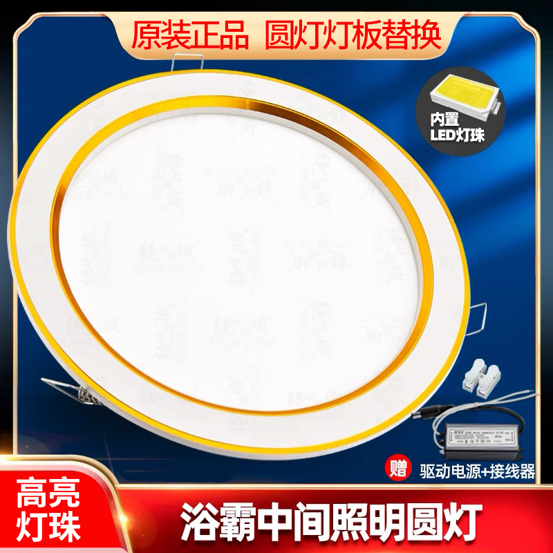 浴霸LED圆灯灯板集成吊顶中间灯7寸8寸led面板灯圆形替换控制照明