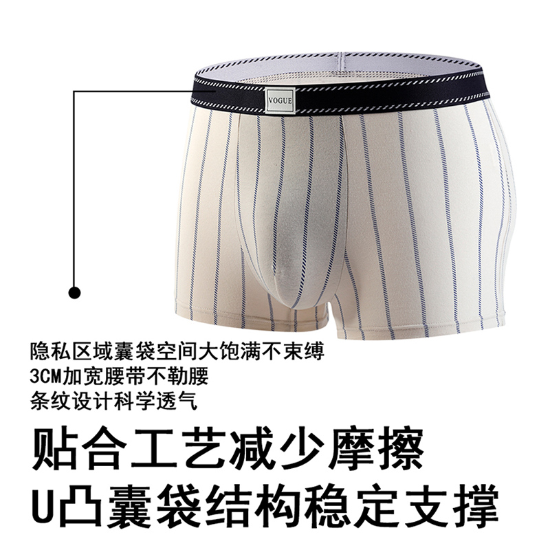 纯棉男士内裤男生平角裤四角短裤头底裤衩青少年新疆棉条纹摩擦