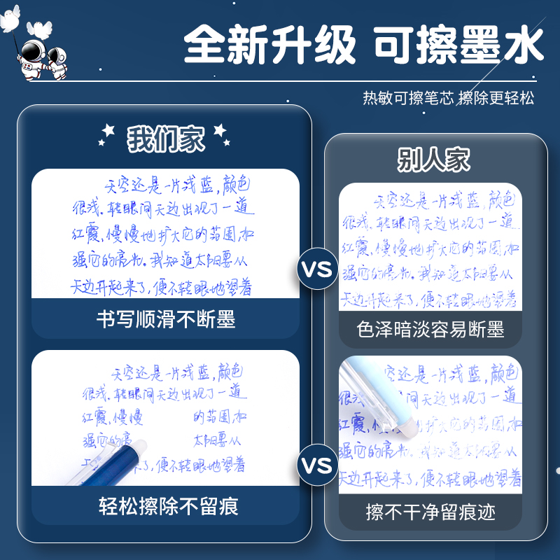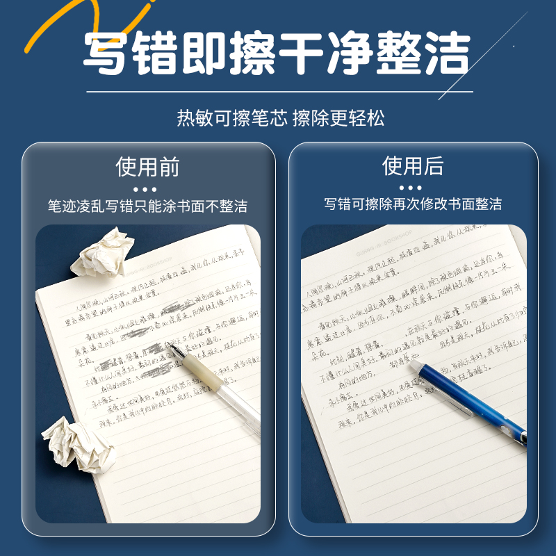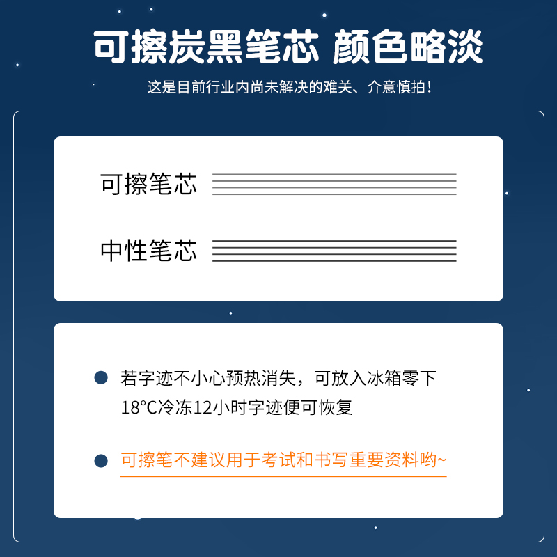 按动可擦笔芯中性笔晶蓝色热可擦3-5年级小学生用热魔摩磨易擦墨蓝色0.5mm摩擦笔芯黑色魔力檫专用按动款ST头