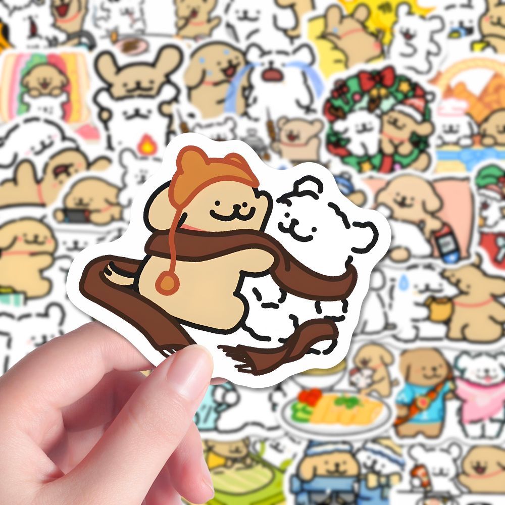 216张线条小狗的恋爱日常贴纸ins风可爱卡通手账装饰笔记本粘贴