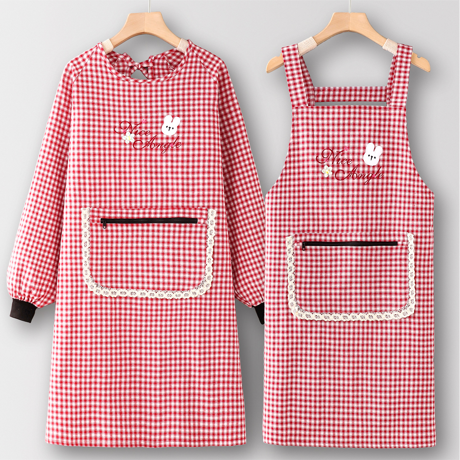 年轻款工作服罩衣女新款棉围裙厨房家用网红大人长袖上班专用可爱