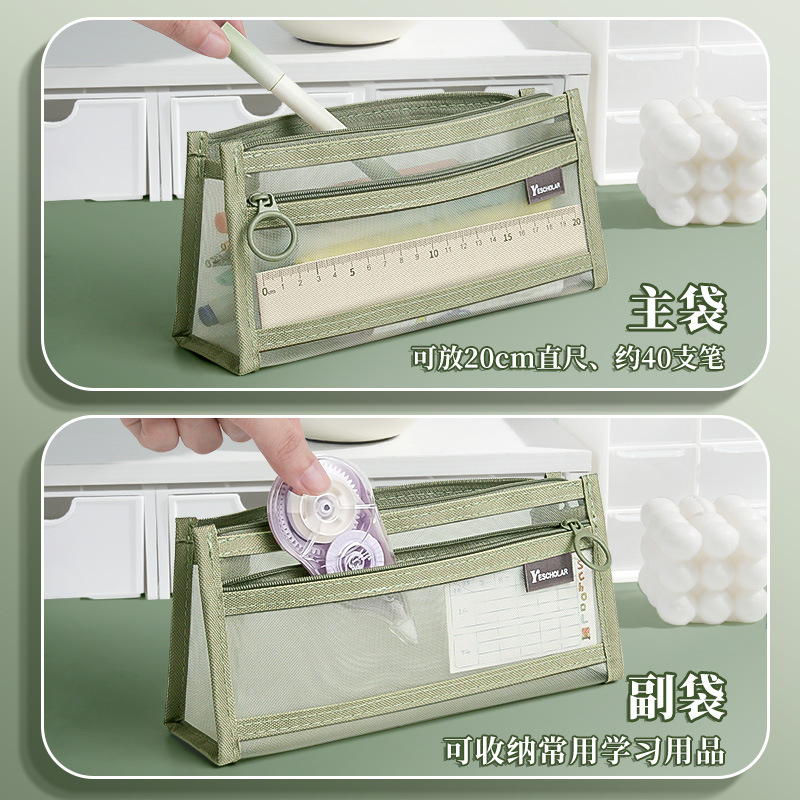 笔袋透明网纱学生考试专用文具袋双层立体大容量文具盒小学生