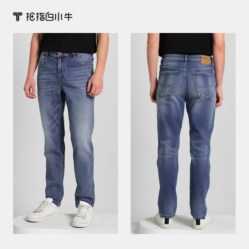 拇指白小牛直筒牛仔裤男装合体中腰水洗长裤2025春季新款休闲百搭