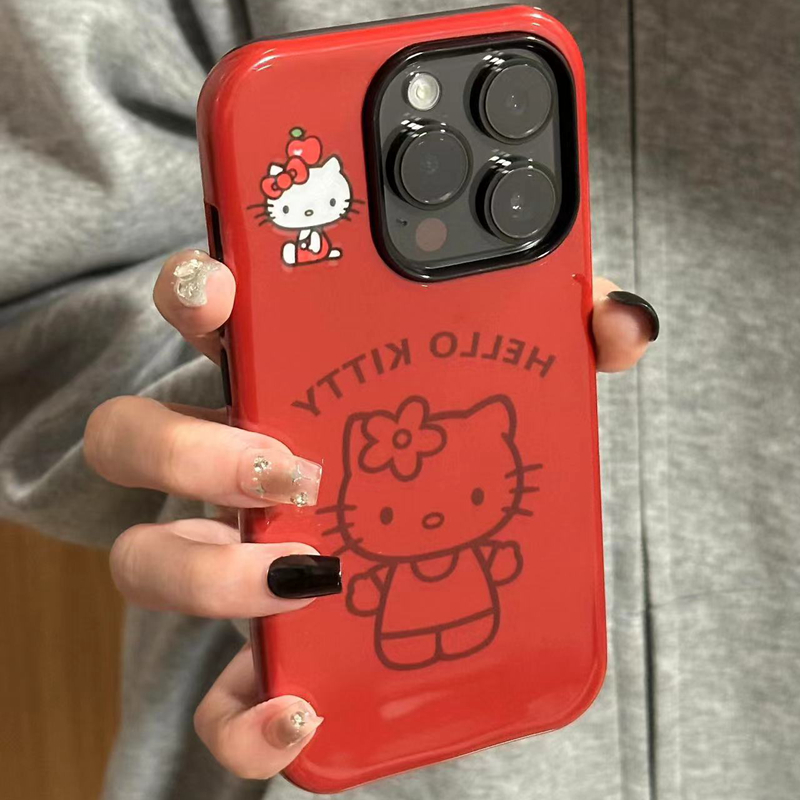 创意ins风可爱kt猫适用iphone14promax苹果15手机壳13二合一新款小米14pro女华为mate60pro保护套不会撞壳11