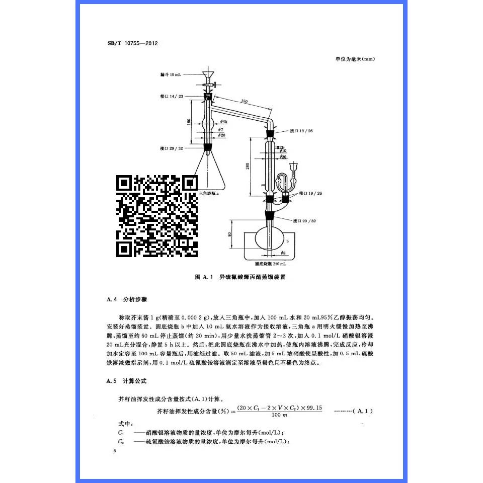SB/T 10755异硫氰酸烯丙酯蒸馏装置 芥籽油挥发性成分含量的测定