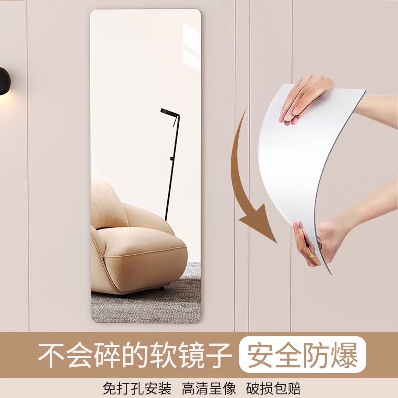 软镜子贴墙自粘亚克力全身镜穿衣镜家用高清成像墙面粘贴镜试衣镜