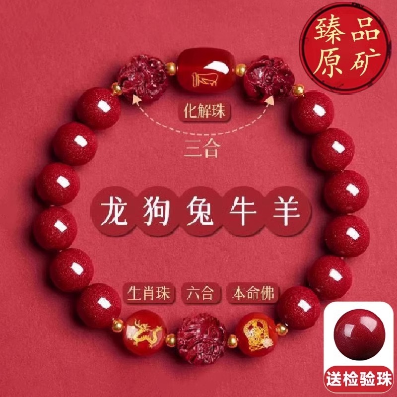 朱砂手串手链三合六合本命年生肖转运珠男女款佩戴官方旗舰店护身