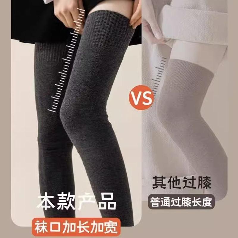 加长大腿袜压力过膝长筒袜女秋冬加厚保暖超长护膝高筒袜吸汗毛圈