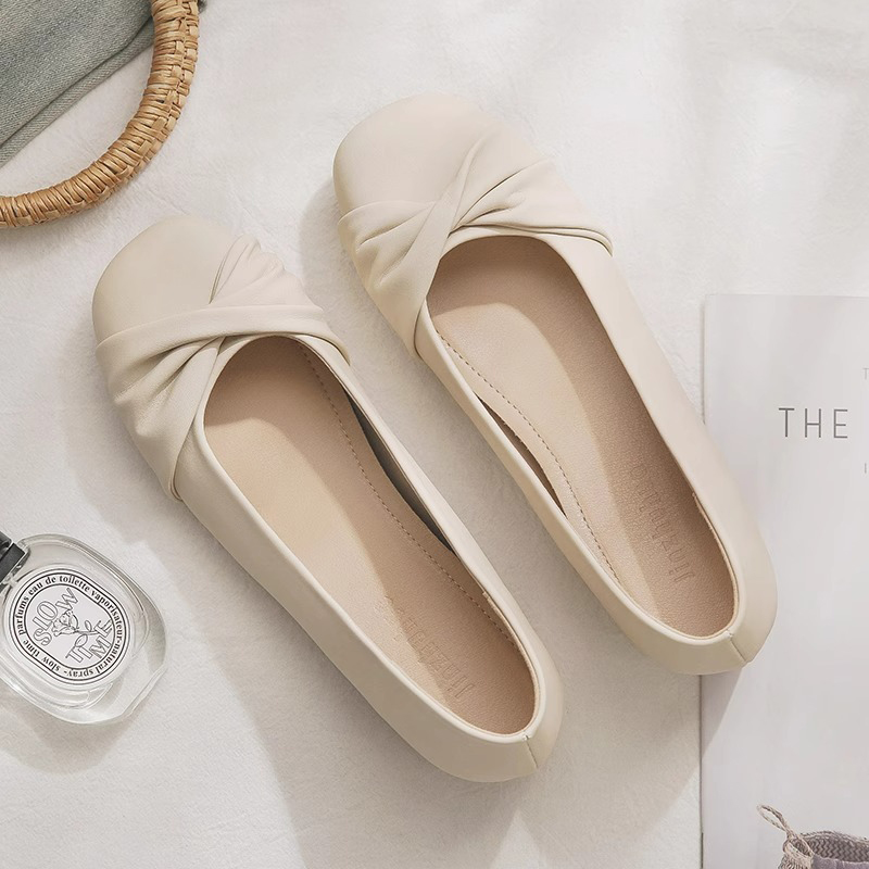 米霏~法式平底芭蕾单鞋女秋季2025新款软底一脚蹬蛋卷鞋大码女鞋