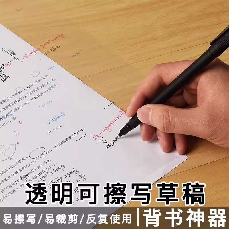 可擦写透明草稿纸便携白板膜可重复临摹书写字学生背书神器记忆板考试小白板可擦写字板记事板手写板a4草稿板