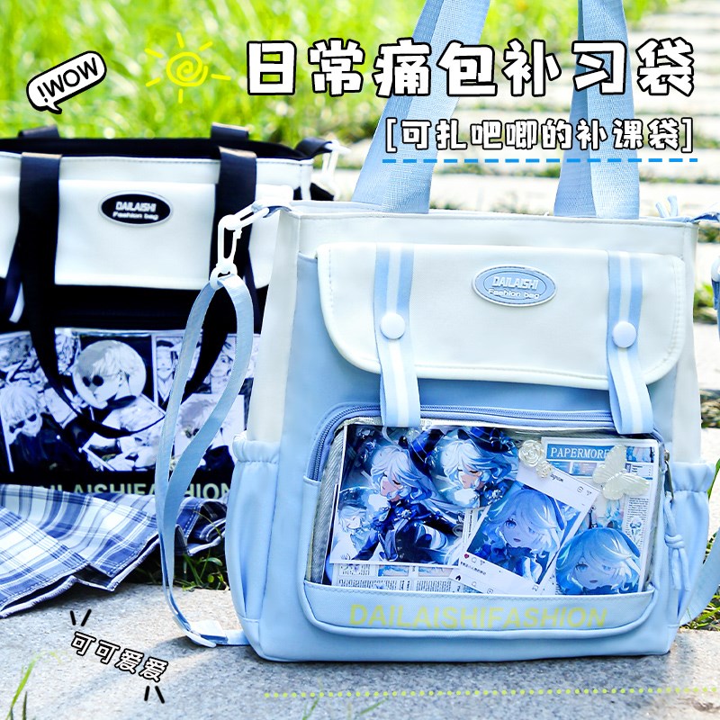 速发痛包补习袋小学生暑假课外班手提拎书袋可斜挎大容量帆布补课